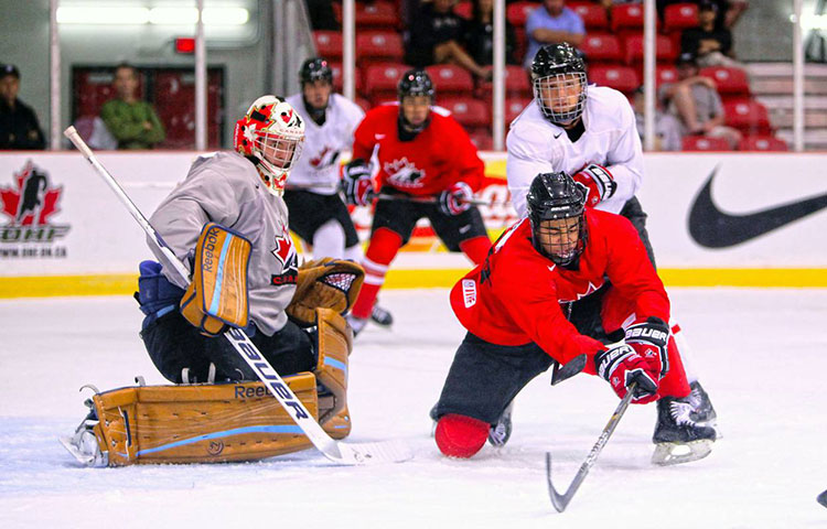 ETOBICOKE (Ontario) – Dimanche soir, Nick Ritchie (Orangeville, Ont./Peterborough, OHL) a inscrit un doublé, dont son deuxième but gagnant en autant de matchs, et les Rouges ont vaincu les Blancs pour un deuxième soir d’affilée au camp de sélection de l’équipe de l’équipe nationale masculine estivale des moins de 18 ans du Canada, l’emportant 5-1.