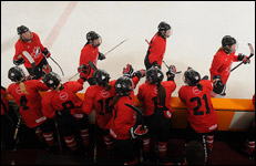 Deux buts de Wickenheiser ont donné le ton à l’attaque canadienne, alors que Brianne Jenner (Oakville, Ont./Cornell University, ECAC) a ajouté un but et deux passes. Jennifer Wakefield (Pickering, Ont./Boston University, HE) et Catherine White (Brampton, Ont./Cornell University, ECAC) ont également laissé leur marque dans la colonne des buts pour les Rouges. Ces dernières se sont approchées à un but de leurs adversaires trois fois dans la rencontre, à 4-3, 5-4 et 6-5, avant que Ryan Heddinger ne confirme la victoire de Calgary dans une cage abandonnée avec 9,9 secondes au cadran. Heddinger, Cade Owad, Clint Filbrandt et Chad Labelle ont chacun obtenu un but et une passe pour les Northstars, alors que Keaton Burke a récolté trois passes. Calgary a compté trois fois sur ses cinq premiers lancers face à la gardienne Shannon Szabados (Edmonton, Alb./NAIT, ACAC) et a dominé les Rouges 27-20 au chapitre des tirs. Les Rouges affronteront une autre formation midget AAA qui prend part au camp, les Royals de Calgary, samedi après-midi (12 h 30 HNR), tandis que les Northstars croiseront le fer avec les Blancs samedi soir (15 h 45 HNR), après s’être mesurés aux Royals vendredi soir, dans un duel du midget AAA. |